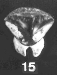 Dans certains cas (fig. 17), la carène peut s’étirer vers I’avant dans sa partie médiane et surplomber la dépression médio-externe; dans d’autres cas, la zone triangulaire postérieure de la carène peut être concave; la dépression médio-externe manque sur une dent.