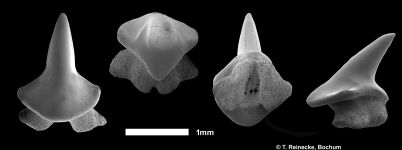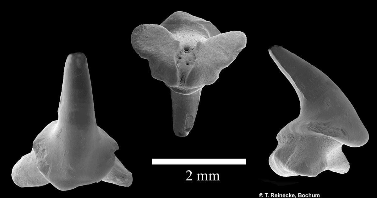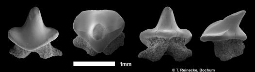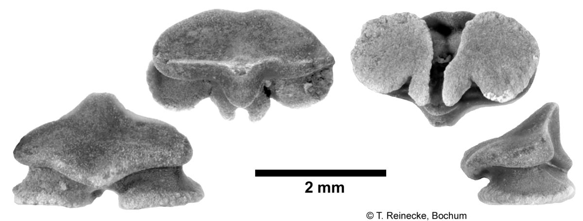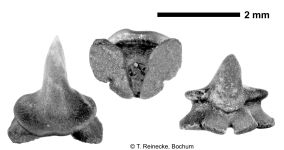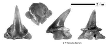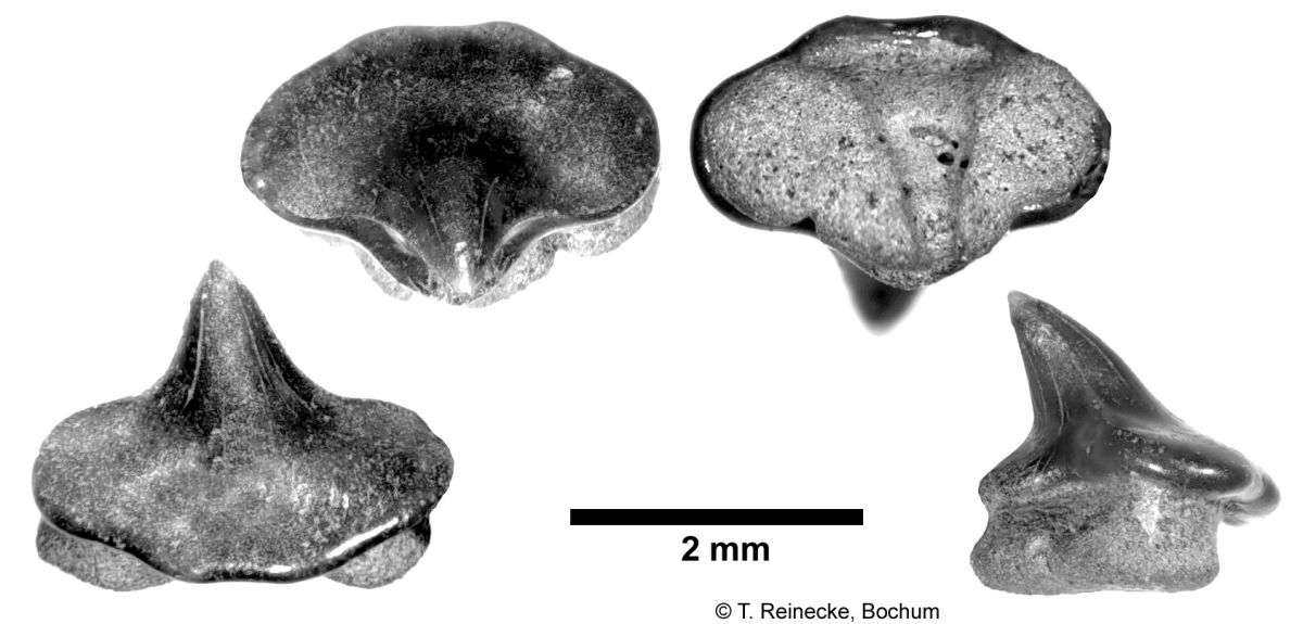 L'on serait tenté d'attribuer ces dents au genre Raja, dont les individus mâles de diverses espèces modernes ont des dents quelque peu semblables. Les différences sont toutefois sensibles. La couronne des dents décrites a une autre forme : plus allongée, à base plus mince, elle a une section ovalaire ou même circulaire, tandis que, chez Raja, la face antérieure de la couronne est presque plate.