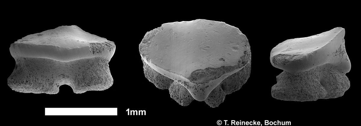 Ces dents ne peuvent donc appartenir qu'à la famille des Torpedinidae et parmi ceux-ci, qu'au genre Narcine. Ce genre, représenté dans la nature actuelle par l'espèce Narcine brasiliensis, est peu connu à l'état fossile. O. HASSE lui attribue des vertèbres isolées rencontrées dans le Lutétien inférieur (Bruxellien) de Belgique. En 1894, O. JAEKEL a décrit un Torpédinae de l’Eocène du Monte Bolca (Italie), auquel il donna le nom de Narcine molini. Enfin, MOLIN considérait que le Torpedo (
