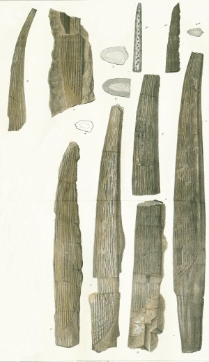 Hybodus incurvus Agass. - Ichthyodorulithes dorsetiensis de la Bèche et Buckl.
