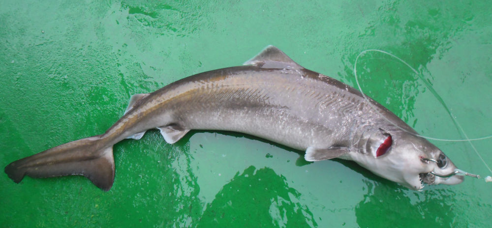 [2295] caught on the Three Kings Rise, north-east of the Three Kings Islands, New Zealand (32°14.0'S, 172°15.7'), ENMNZ P.37246, male, 1096 mm total length, surface longline set at 120-220 m depth, F.V. Hoshin 58, Ministry of Fisheries observer trip number 1344, set #66; 8 June 2000;