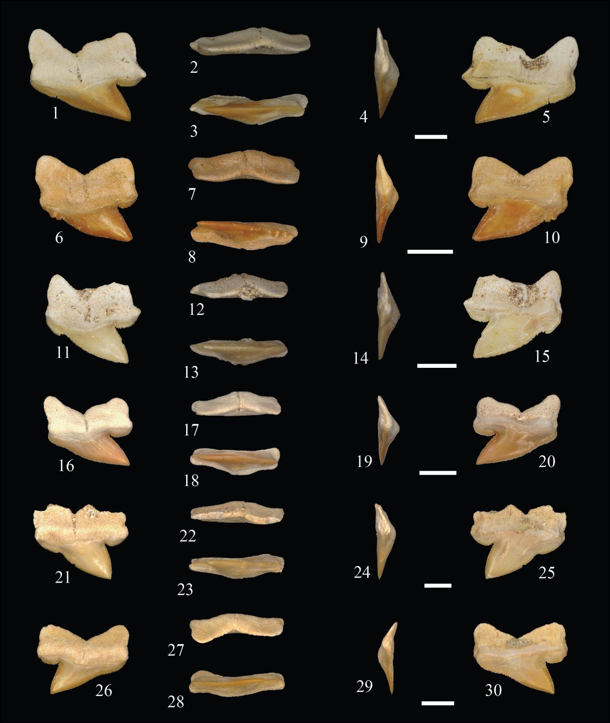 Pseudocorax heteroserratus Egli, Goode, Rempert & Rego, 2025,Upper Couche III layer of the Oulad Abdoun Basin, Sidi Chennane quarry, near Oued Zem, Khouribga Province, Morocco; coll. Figure 7. Upper lateroposterior teeth © Egli et al. 2025
