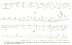 Cusps of teeth smooth to faintly irregular; posterior margins sometimes denticulate; anterior teeth of lower jaw of mature males distinct from those of females and young males (fig. 13); in mature males the cusps of the anterior teeth of the lower jaw (and sometimes upper) are slenderer and rounder in cross section than in females and young males [2274]