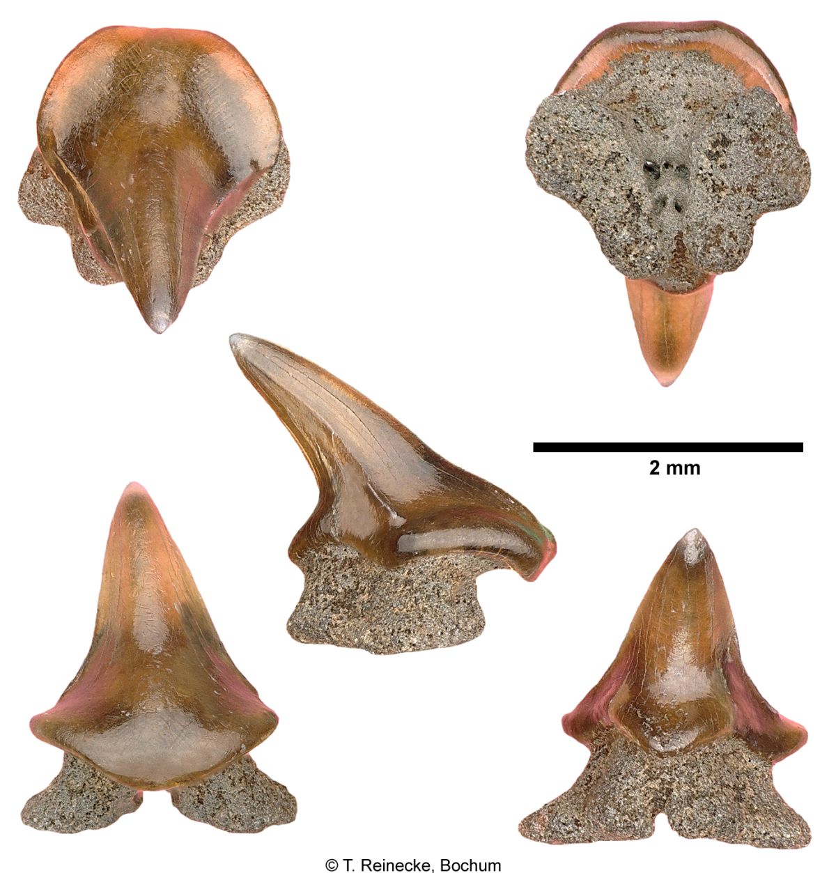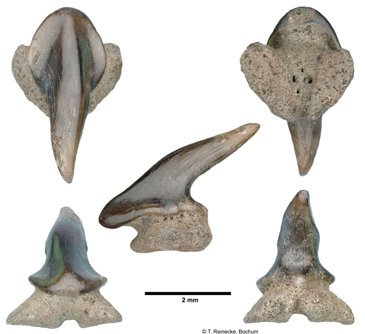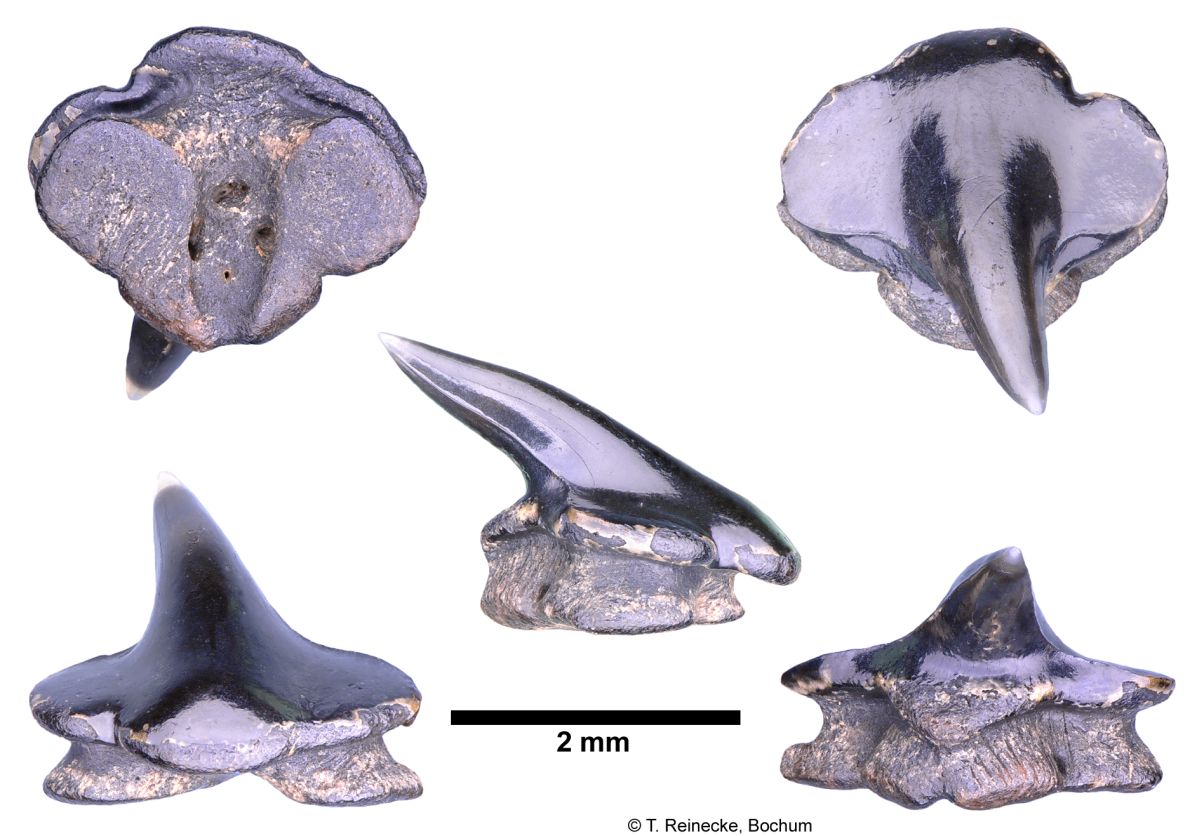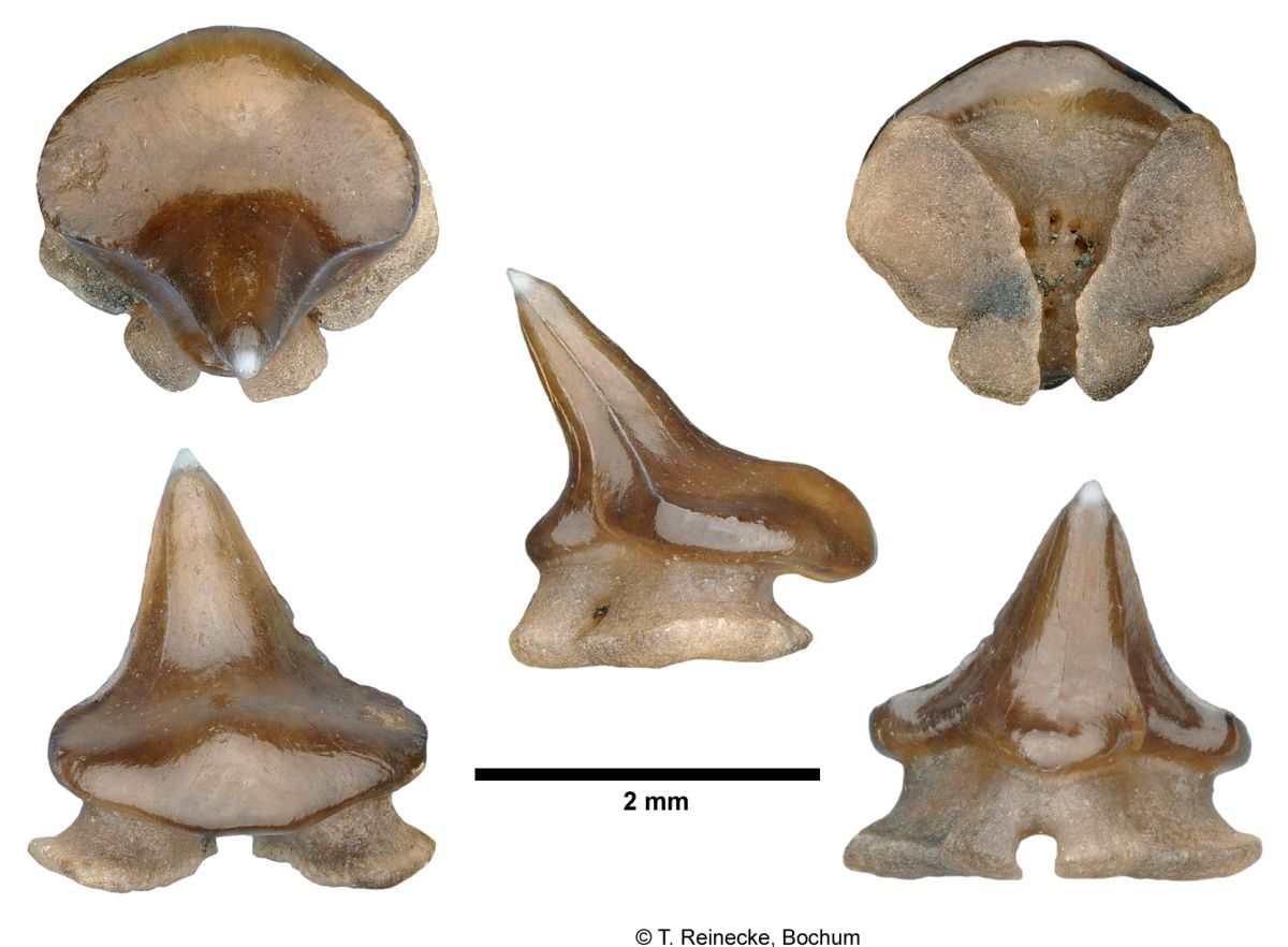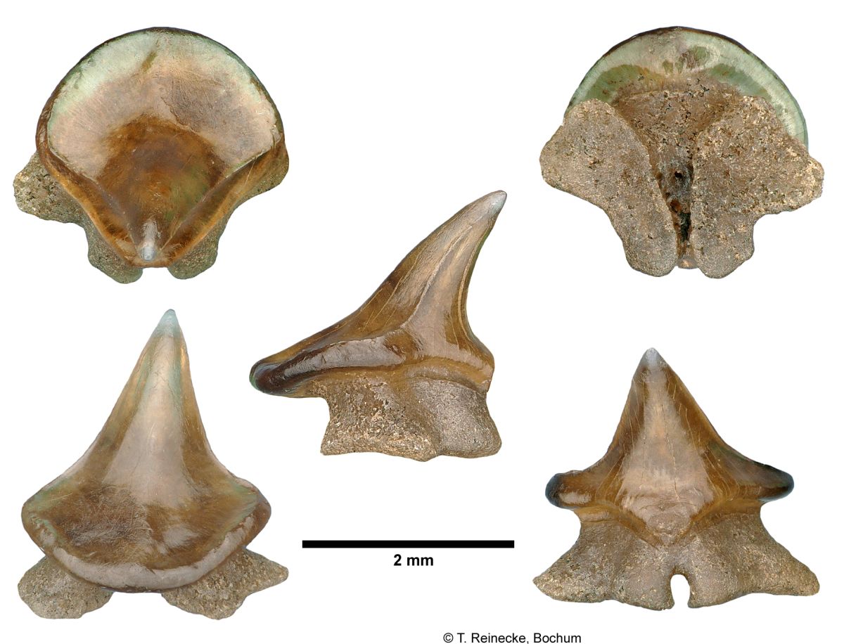 L'on serait tenté d'attribuer ces dents au genre Raja, dont les individus mâles de diverses espèces modernes ont des dents quelque peu semblables. Les différences sont toutefois sensibles. La couronne des dents décrites a une autre forme : plus allongée, à base plus mince, elle a une section ovalaire ou même circulaire, tandis que, chez Raja, la face antérieure de la couronne est presque plate.