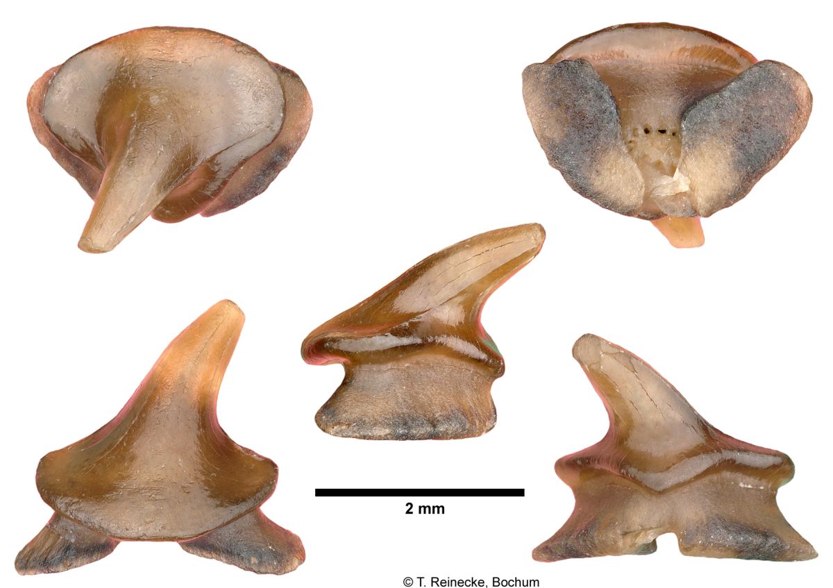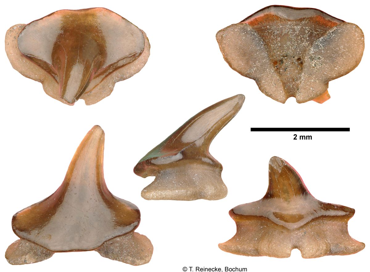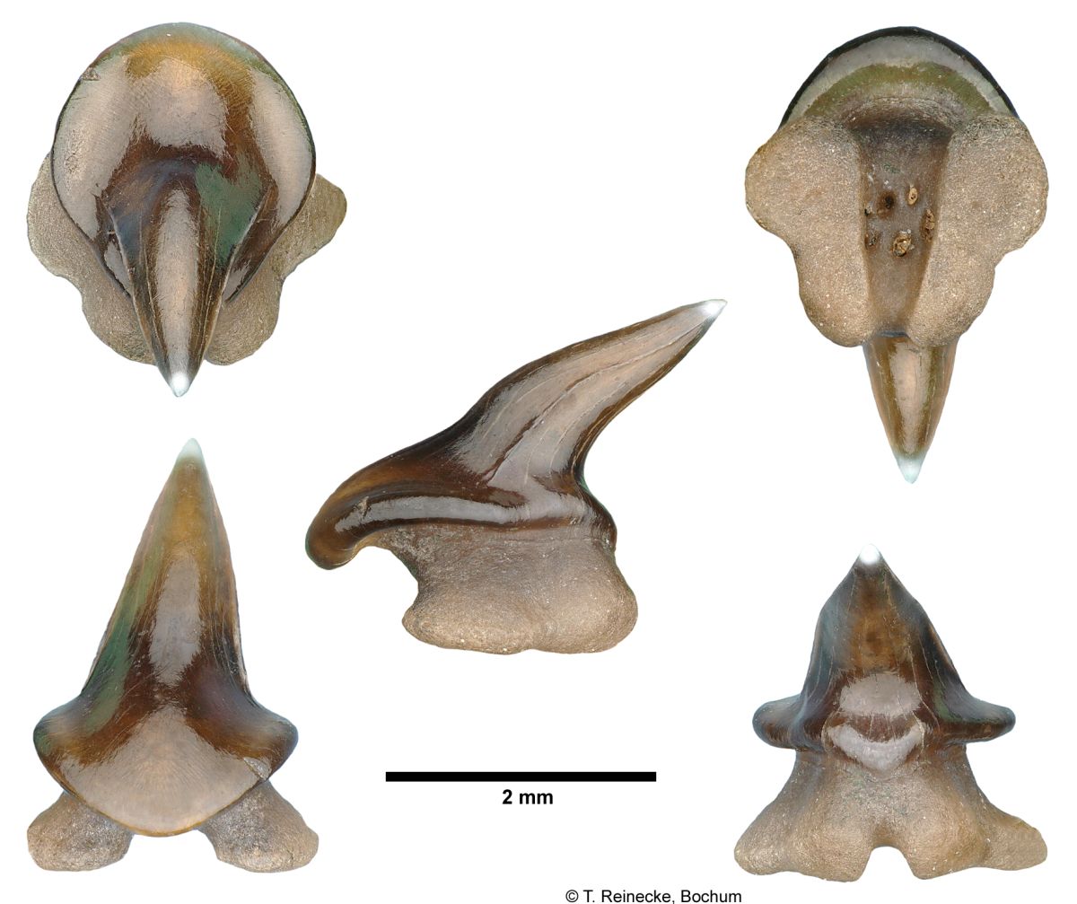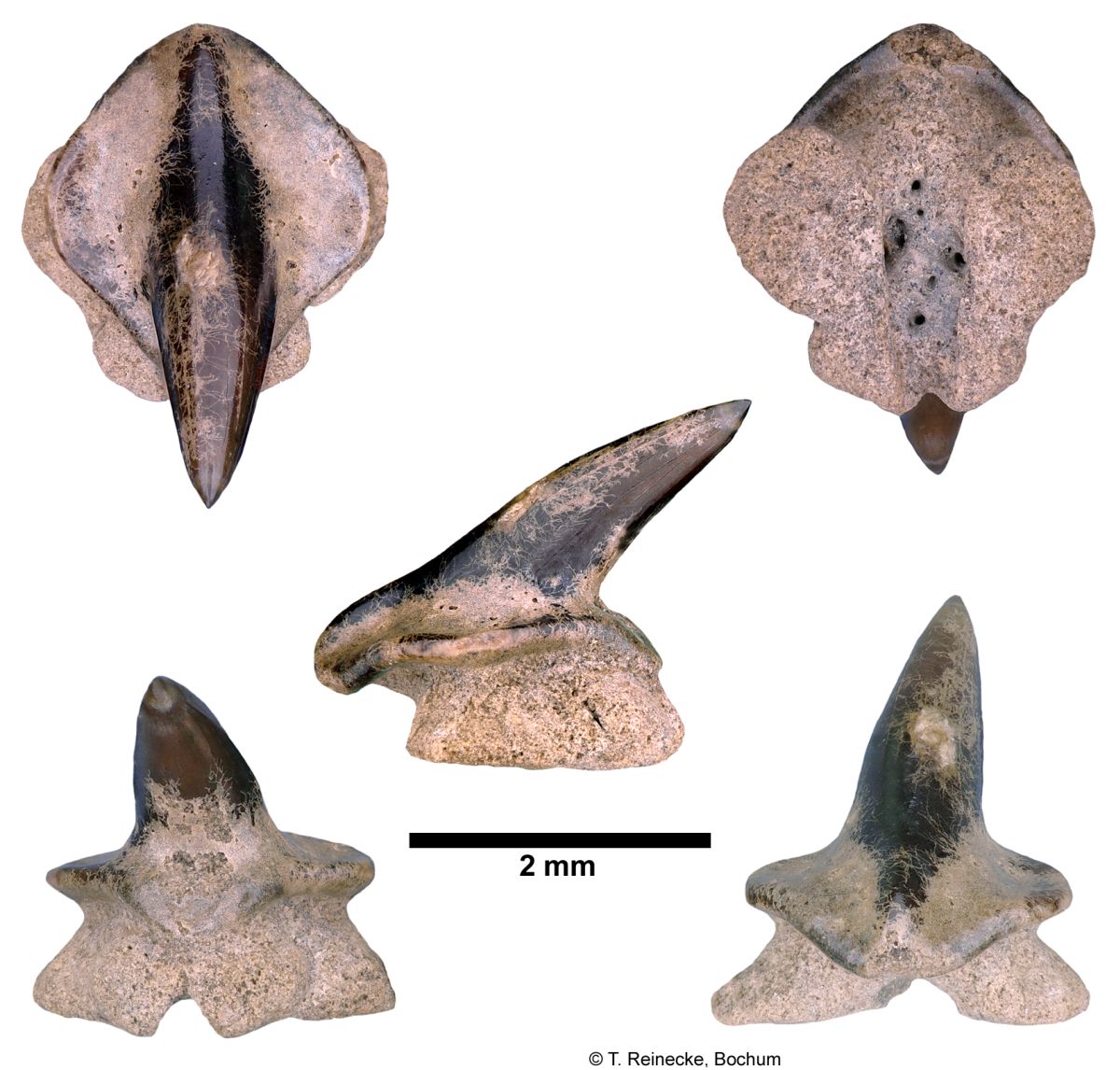 L'on serait tenté d'attribuer ces dents au genre Raja, dont les individus mâles de diverses espèces modernes ont des dents quelque peu semblables. Les différences sont toutefois sensibles. La couronne des dents décrites a une autre forme : plus allongée, à base plus mince, elle a une section ovalaire ou même circulaire, tandis que, chez Raja, la face antérieure de la couronne est presque plate.