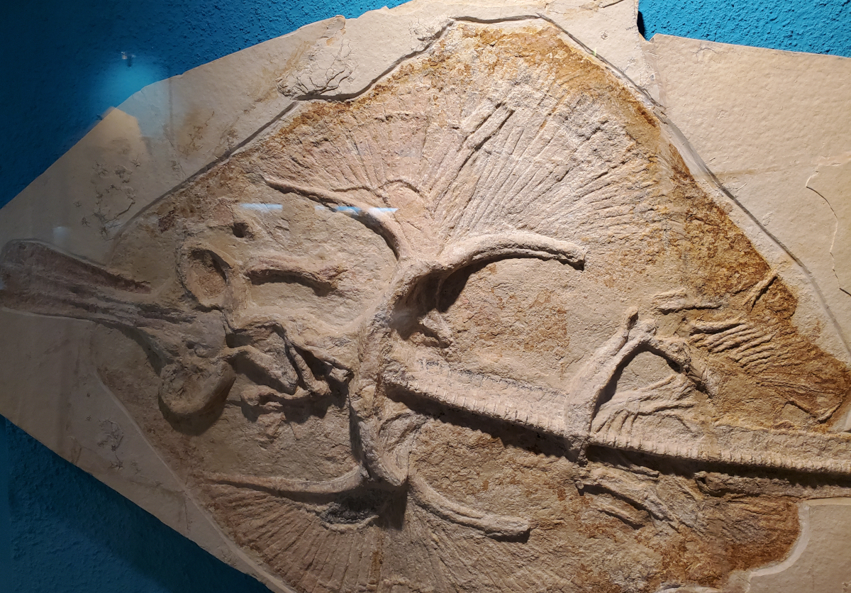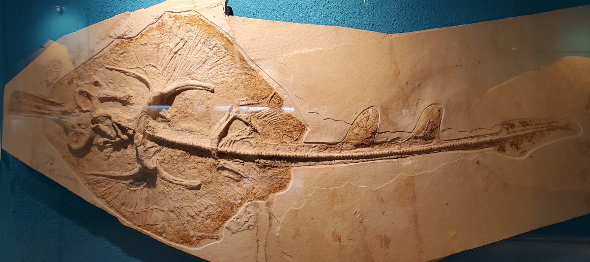 Spathobatis bugesiaca Thiollière, 1848; outer edges of the shallow water platform western Eichstätt, Late Jurassic (149,7 MA), Bürgermeister Müller Museum, Solnhofen © J. Pollerspöck, www.shark-references.com